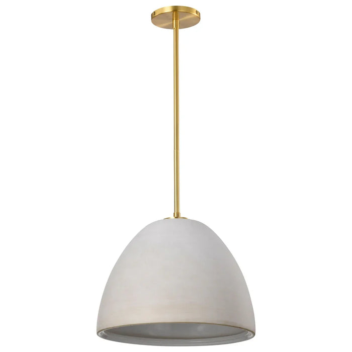- Collins 14-inch one light pendant finished in brushed brass with white ceramic