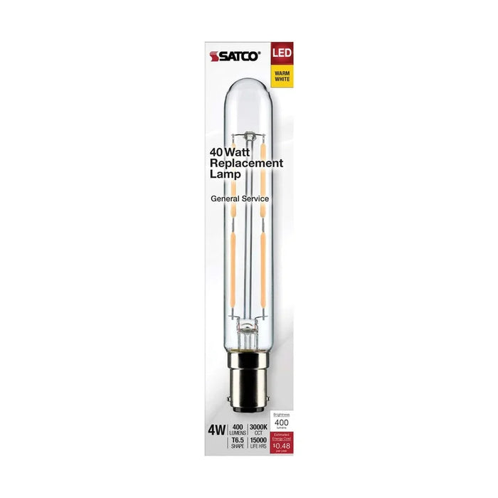 4W T6.5 LED - Clear - Double Contact Bayonet Base - 3000K - 400 Lumens - 120V