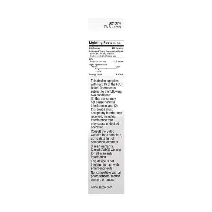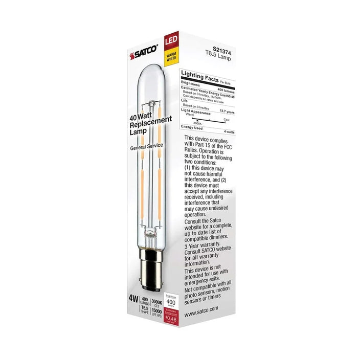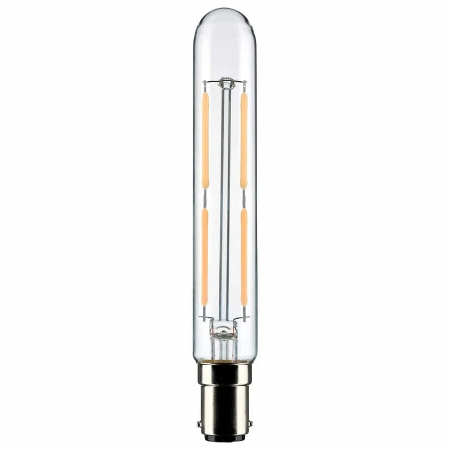 Known for producing a wide range of quality lighting products, Satco|Nuvo's clear bulb is no exception. At just 4 watts, it requires far less energy to operate than traditional vintage bulbs, while keeping with the style and design of filament lamps. Ideal for exit signs, picture lights, or decorative where a double-contact bayonet base is required, it is also wet rated, another feature that isn't required but adds versatility and multi-purpose use. Designed with a direct output of 3000K in warm white, delivering a soft ambiance, it is perfectly suited for today's lighting solutions.
