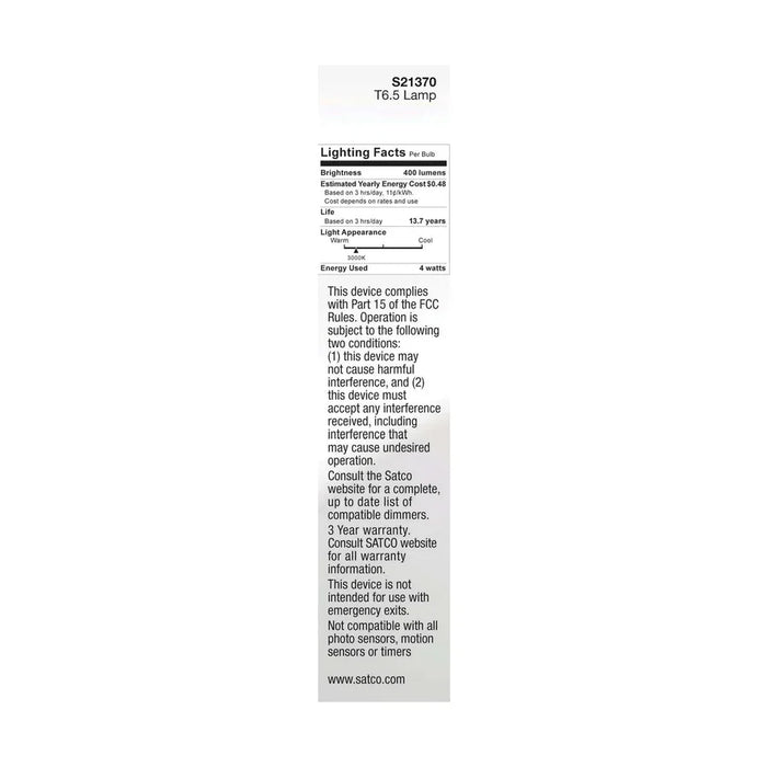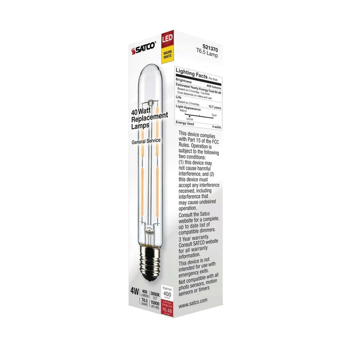 Known for producing a wide range of quality lighting products, Satco|Nuvo's clear bulb is no exception. At just 4 watts, it requires far less energy to operate than traditional vintage bulbs, while keeping with the style and design of filament lamps. Ideal for desk lights, or appliances where an intermediate base bulb is required, it is also wet rated, another feature that isn't required but adds versatility and multi-purpose use. Designed with a direct output of 3000K in warm white, delivering a soft ambiance, it is perfectly suited for today's lighting solutions.