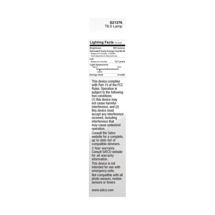 Known for producing a wide range of quality lighting products, Satco|Nuvo's frosted bulb is no exception. At just 4 watts, it requires far less energy to operate than traditional vintage bulbs, while keeping with the style and design of filament lamps. Ideal for desk lights, or appliances where an intermediate base bulb is required, it is also wet rated, another feature that isn't required but adds versatility and multi-purpose use. Designed with a direct output of 3000K in warm white, delivering a soft ambiance, it is perfectly suited for today's lighting solutions.