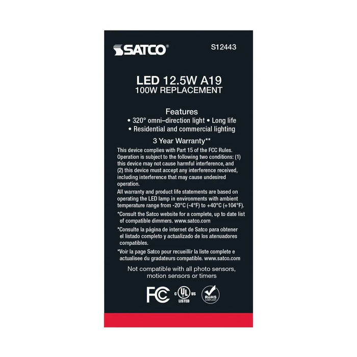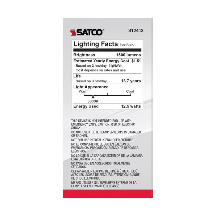 Satco's 12.5-watt LED lamp is traditional, yet contemporary with its clear finish and energy saving LED technology. Elegantly illuminate any room in the house with this 4 pack of dimmable bulbs. Sophisticated and modern, this lamp delivers 15,000 hours of soft white light.