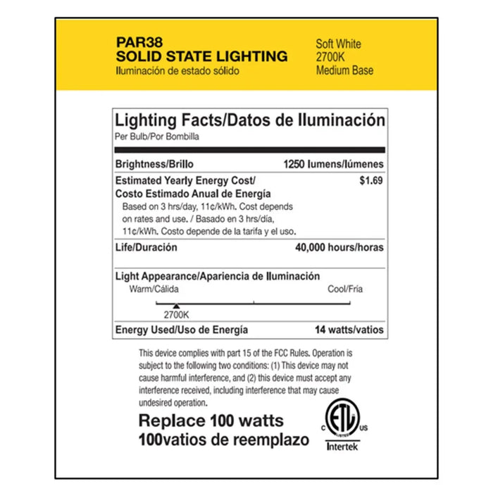 LED PAR38 Flood 14W 2700K 40Deg Dimmable 90+ CRI 1250 Lumen Black Housing T20 T24 JA8-2019 (Performance Series) (6-Pack)