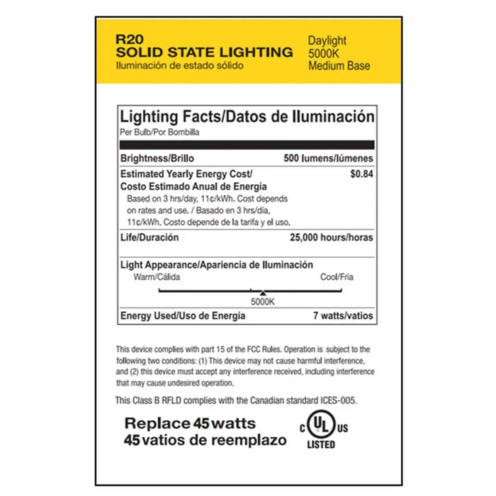 LED R20 Flood 7W 5000K Dimmable 80+ CRI 500 Lumen White Housing (Essential Series) (6-Pack)
