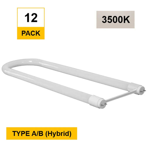 LED T8 6in U-Bend tube 13W 3500K DuoConnect Type A-B 110-277V 1950 Lumen 50000 hrs Medium Bi-Pin (G13) Base 83 CRI (12-Pack)