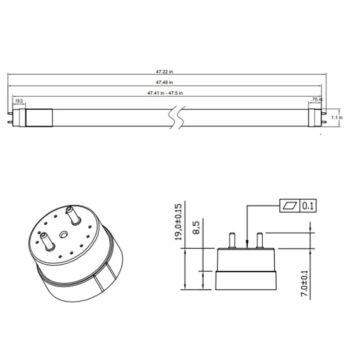 LED T8 High Efficiency Linear Tube 10.5W 48in 3500K Type B Double-Single Ended 1600 Lumen (25-Pack)