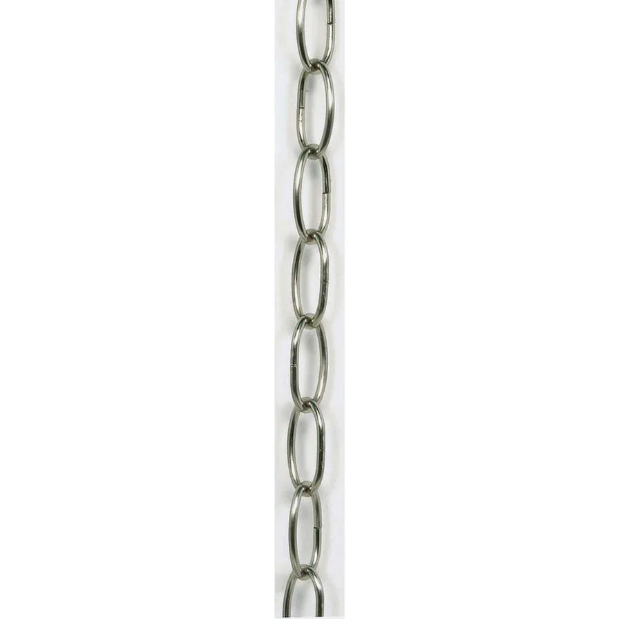 3 Ft. - 8 Gauge Chain - Brushed Nickel Finish - 1-1/2 in. - Link Len - 7/8 in. - Link Wid - 1/8 in. - Thick - 1 yd. Len - 24 yd./Ctn - 35lbs Max
