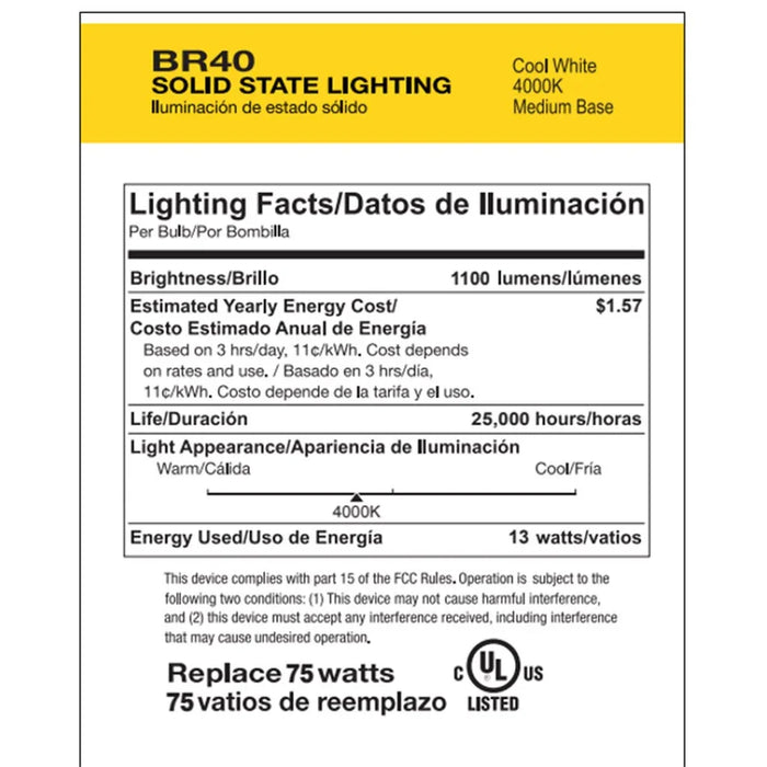 LED BR40 Flood 13W 4000K Dimmable 80+ CRI 1100 Lumen White Housing (Essential Series) (6-Pack)