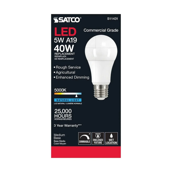 5W - A19 LED Dimmable Agriculture Bulb - 5000K - 120V