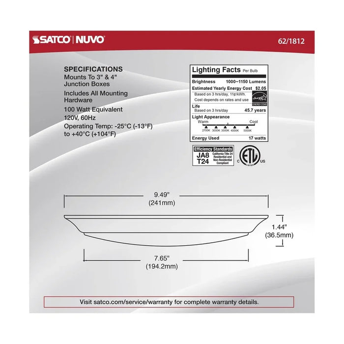 Introducing SATCO|NUVO's LED CCT Selectable Disk Lights with ColorQuick technology! Available in 7-inch and 10-inch sizes, these disk lights are perfectly suited for various spaces making them ideal for Multi-Family and Residential locations. These disk lights feature a high CRI of 93, 2.5kV surge protection and wet location rating. These CCT Selectable Disk Lights are rated for 50,000 hours of illumination and are durable enough for any environment.