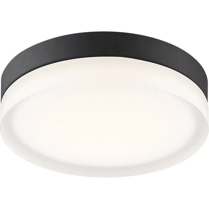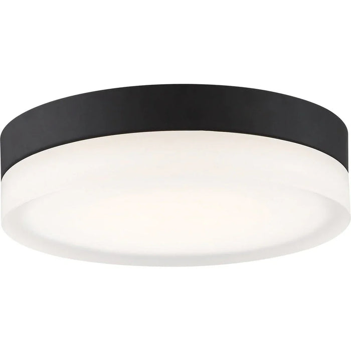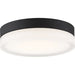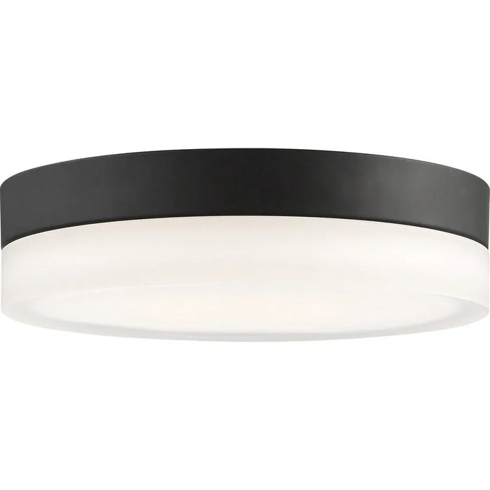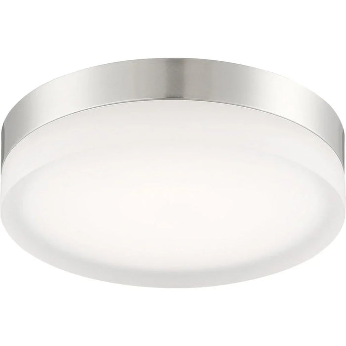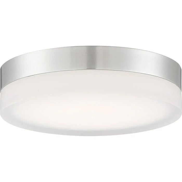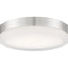 Satco's Pi 14 inch integrated LED flush mount features round white etched glass with a brushed nickel accent, offering a clean aesthetic, superior light quality and energy savings that can go anywhere. Illuminate kitchens, bathrooms, hallways, and office spaces with this sleek, round flush mount fixture. Dimmable and long-lasting, this fixture delivers 50,000 hours of warm white light.