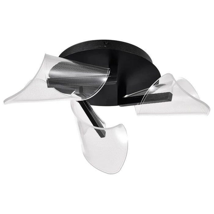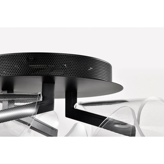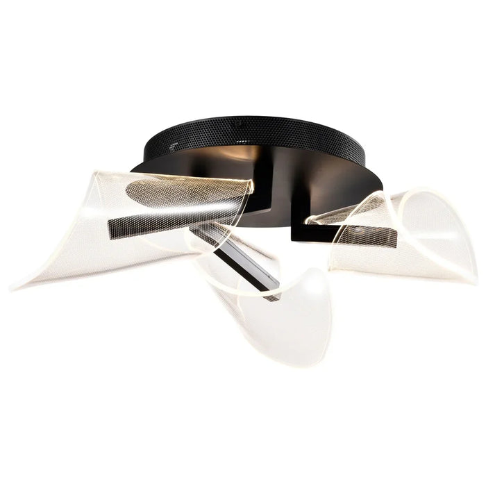 - Sedona LED 22-inch flush mount finished in matte black with silk screened acrylic lens