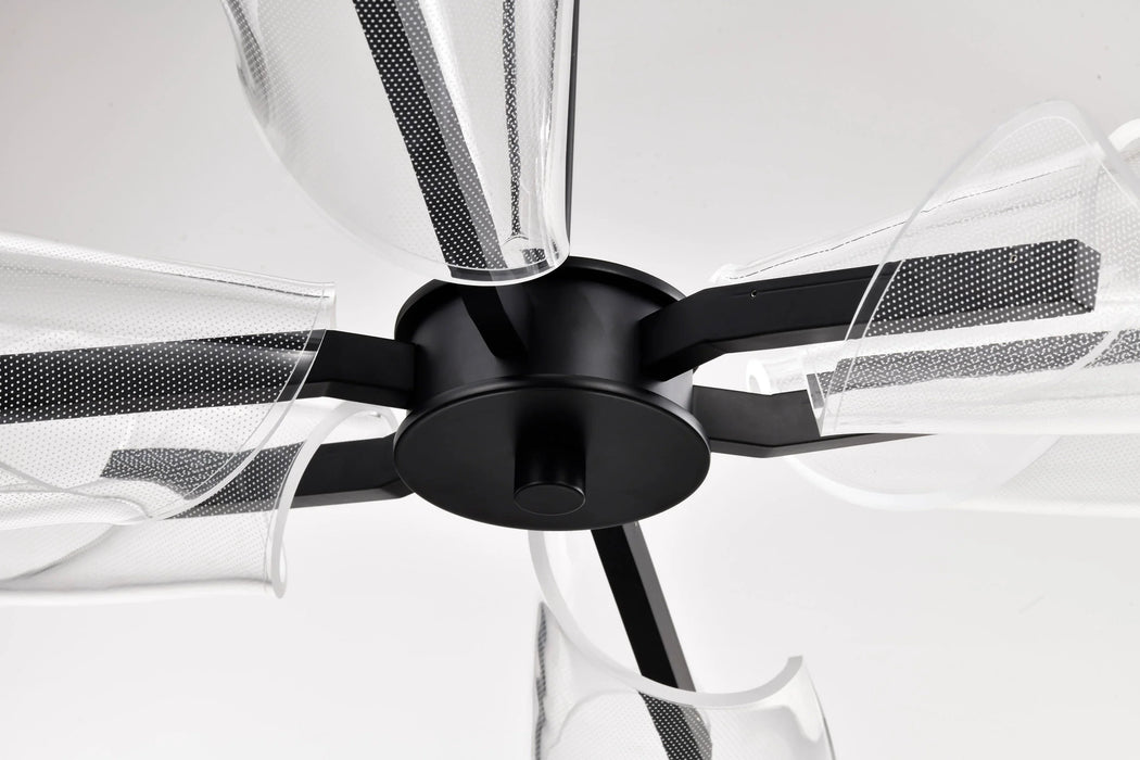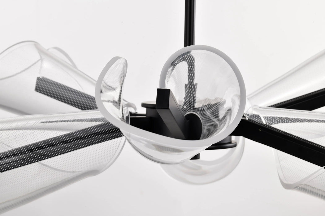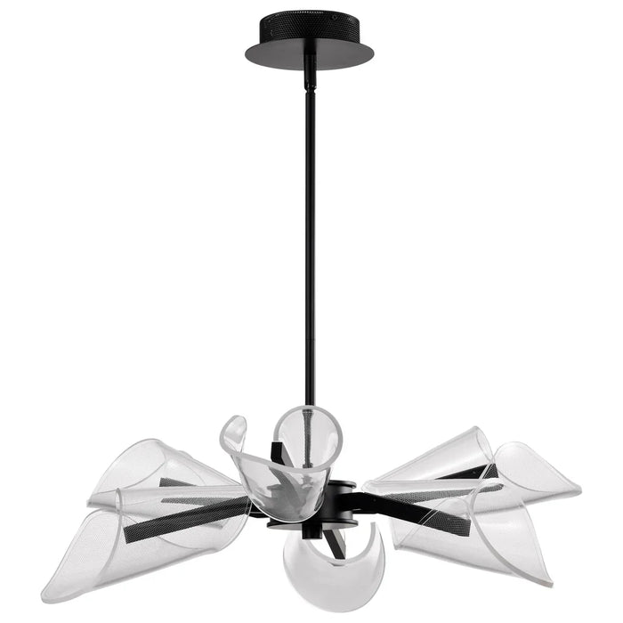 - Sedona LED 28-inch chandelier finished in matte black with silk screened acrylic lens