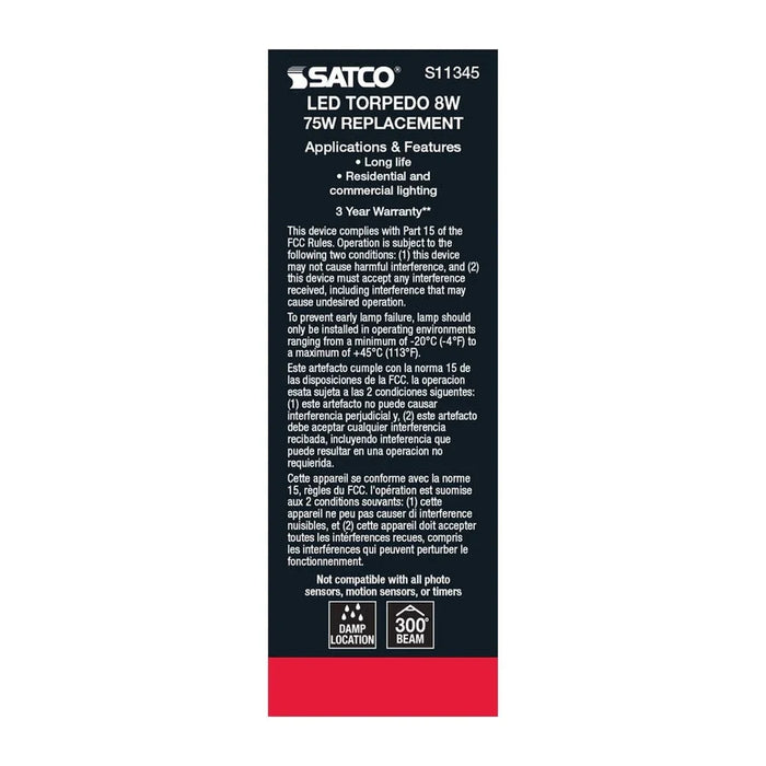 8W C11 LED - Clear Finish - Candelabra Base - 5000K - 90 CRI - 800 Lumens - 120V