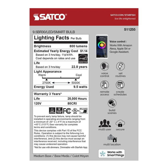 9.5W - BR30 LED - RGB & Tunable White - Starfish IOT - 120V - 800 Lumens