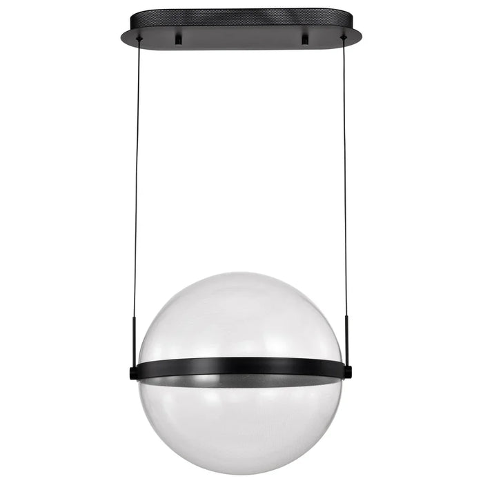 Designed with modern living in mind, the Arvada Collection seamlessly integrates cutting-edge technology with timeless design. The sleek, cable-hung exterior is a canvas of illumination and intricate patterns, with a matte black finish and a perfect sphere of silk screened acrylic housing the light source. The integrated LED lighting not only enhances the visual appeal but also ensures energy efficiency, providing an eco-friendly solution that aligns with your commitment to a sustainable lifestyle. These pendants are the epitome of versatility, from dining rooms to kitchens, and more, the Arvada pendants are designed to captivate, setting the state for ambiance and unforgettable moments.