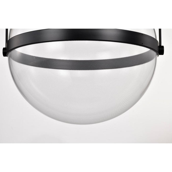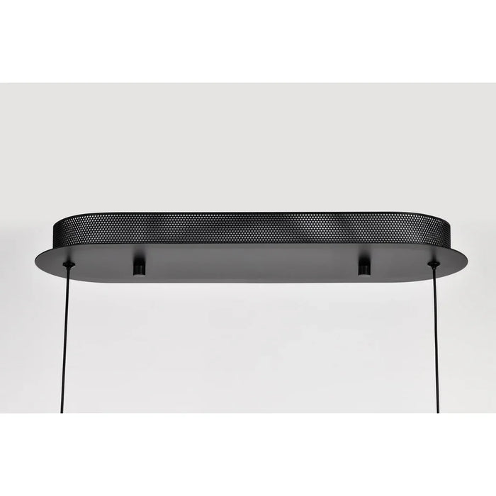 - Arvada LED 16.63-inch pendant finished in matte black with silk screened acrylic lens