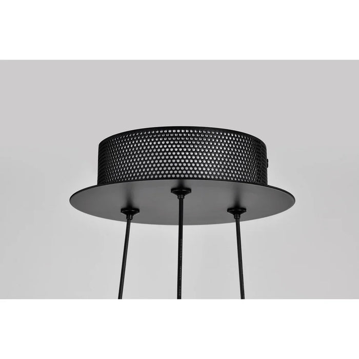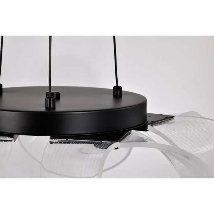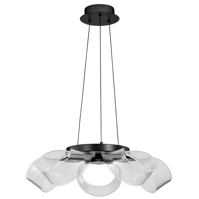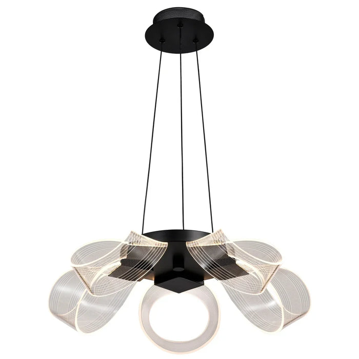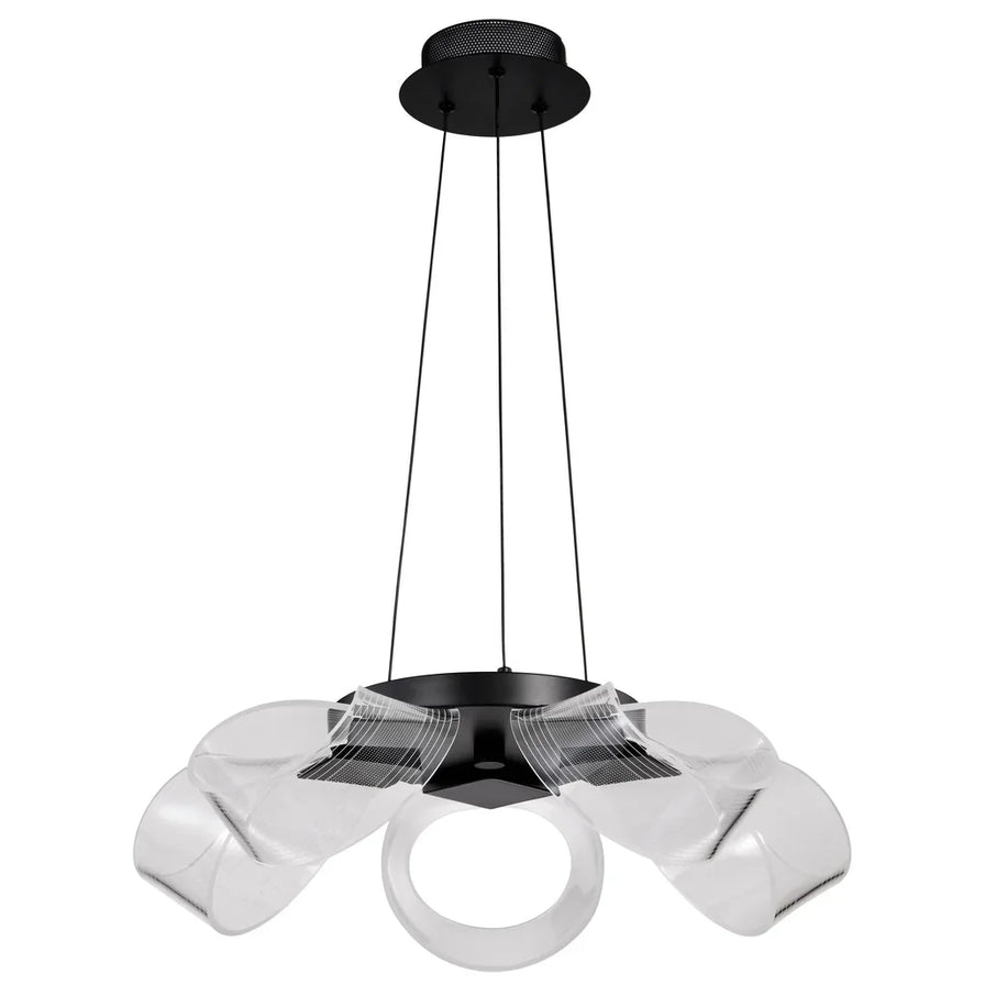 - Barnett LED 20.88-inch chandelier finished in matte black with silk screened acrylic lens