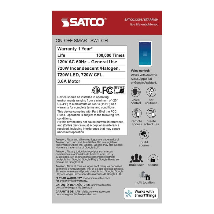 - On/Off Wall Switch with STARFISH Wi-Fi Technology.