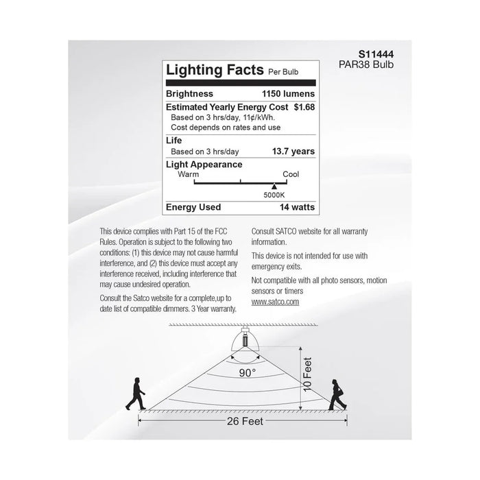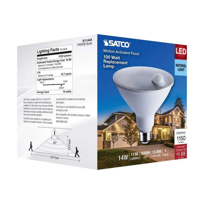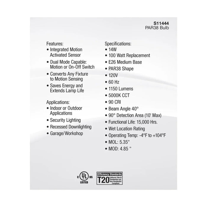 14 Watt PAR38 LED - White - 5000K - 1100 Lumens - 120 Volt - PIR Sensor - Non-Dimmable. Sold as a 6-Pack.