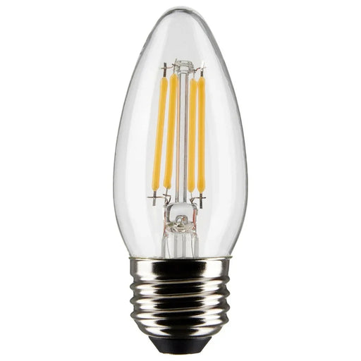 Satco's 5.5-watt B11 bulb has a medium base, is dimmable, and offers warm white light. Wet location rated for kitchens and bathrooms, the carded 2-pack is suitable for retail display. Elegant and long-lasting, this clear bulb has a 300 degree beam spread and delivers 15,000 hours of exceptional illumination.