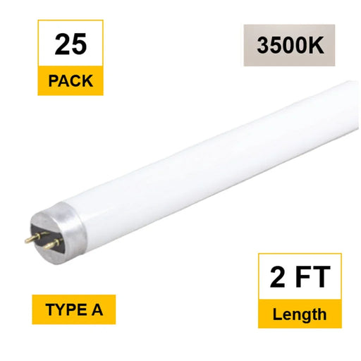 View full detailsLED T8 Quick Connect Linear Tube 8W 24in 3500K Type A (Direct Connect) 110-277V 1325 Lumen 50000 hrs G13 Base 83 CRI (25-Pack)