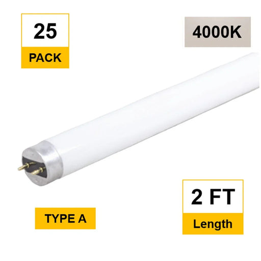 View full detailsLED T8 Quick Connect Linear Tube 8W 24in 4000K Type A (Direct Connect) 110-277V 1350 Lumen 50000 hrs G13 Base 83 CRI (25-Pack)