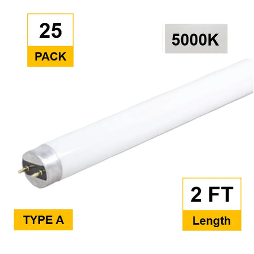 View full detailsLED T8 Quick Connect Linear Tube 8W 24in 5000K Type A (Direct Connect) 110-277V 1350 Lumen 50000 hrs G13 Base 83 CRI (25-Pack)