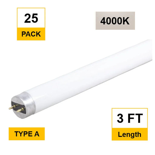 View full detailsLED T8 Quick Connect Linear Tube 36in 11W 4000K Type A (Direct Connect) 110-277V 1700 Lumen 50000 hrs G13 Base 83 CRI (25-Pack)