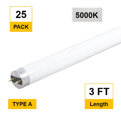 View full detailsLED T8 Quick Connect Linear Tube 36in 11W 5000K Type A (Direct Connect) 110-277V 1700 Lumen 50000 hrs G13 Base 83 CRI (25-Pack)