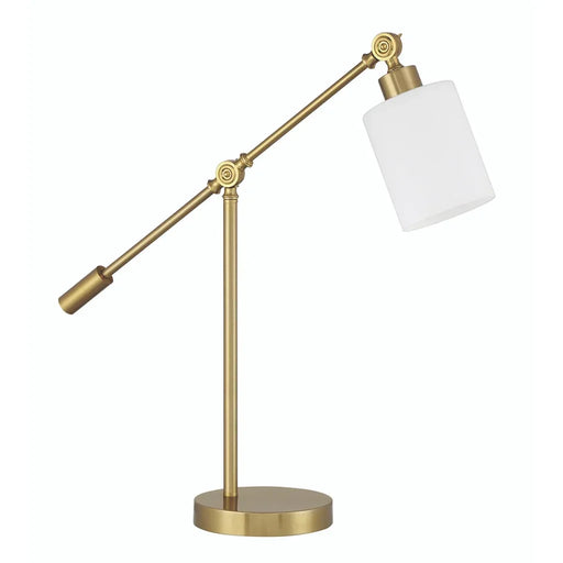 View full details1 Light Glass/Metal Base Table Lamp in White Glass/Satin Brass