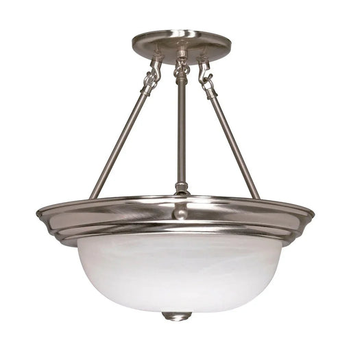 NUVOSatco's 1-light, 12 inch flush mount fixture features a brushed nickel finish, accented with alabaster glass. Easy to install with a Tri-Clip desig...