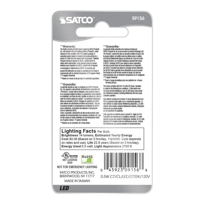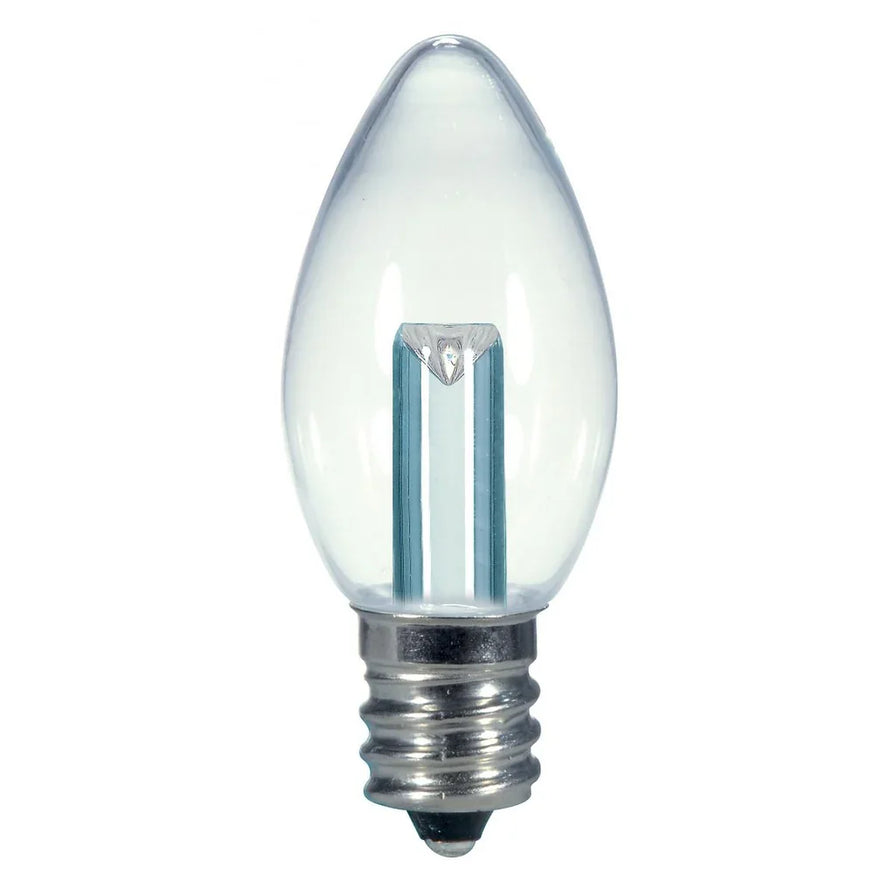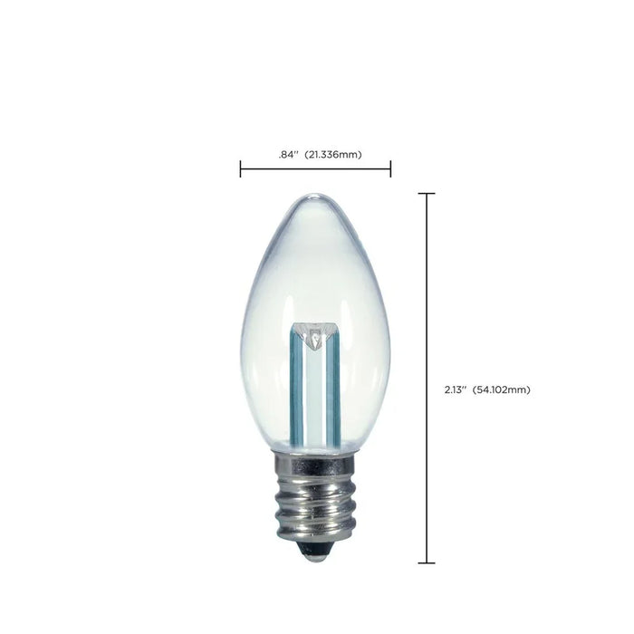 0.5 Watt LED - C7 - Clear - 2700K - Candelabra base - 120 Volt - Carded. Sold as a 12-Pack.