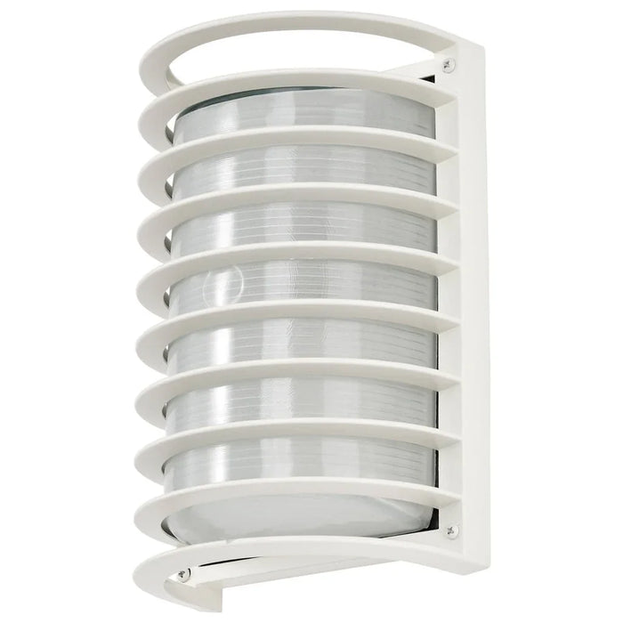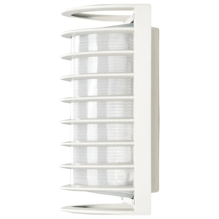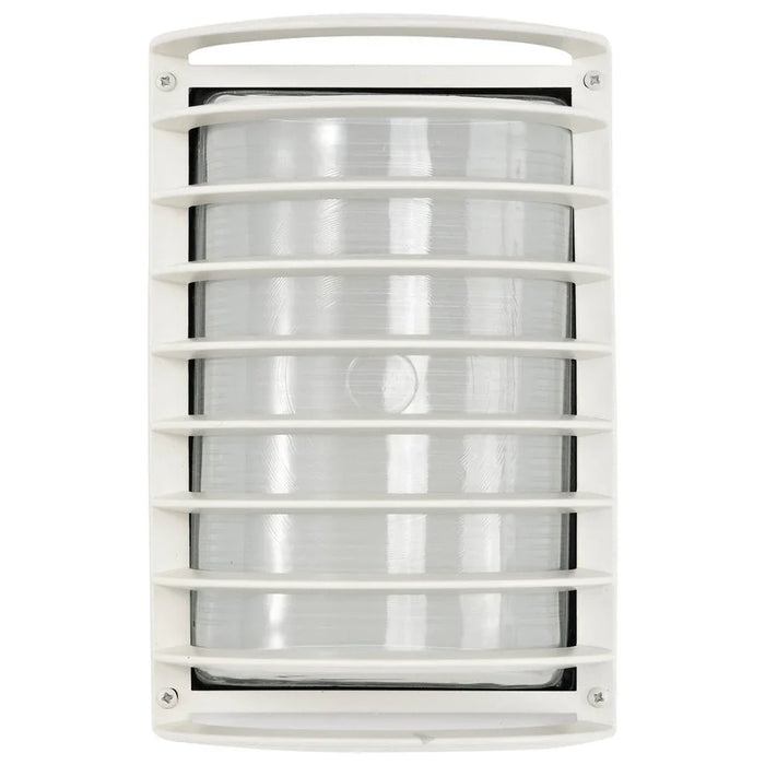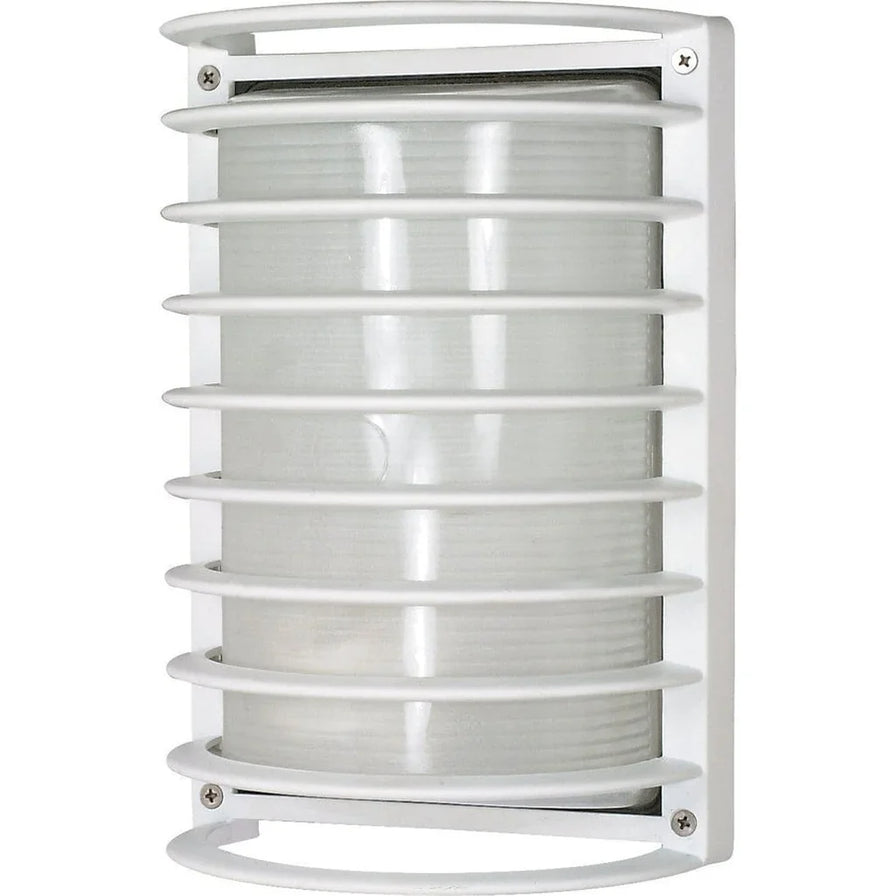 Satco's 1 light, 10 inch Die Cast Bulk Head is a sleek lighting solution for outside areas and large indoor spaces. Stylish and durable, this cage Bulk Head is beautifully finished in semi gloss white and designed to withstand harsh weather conditions. Make safety and security priorities with this rectangular Bulk Head.