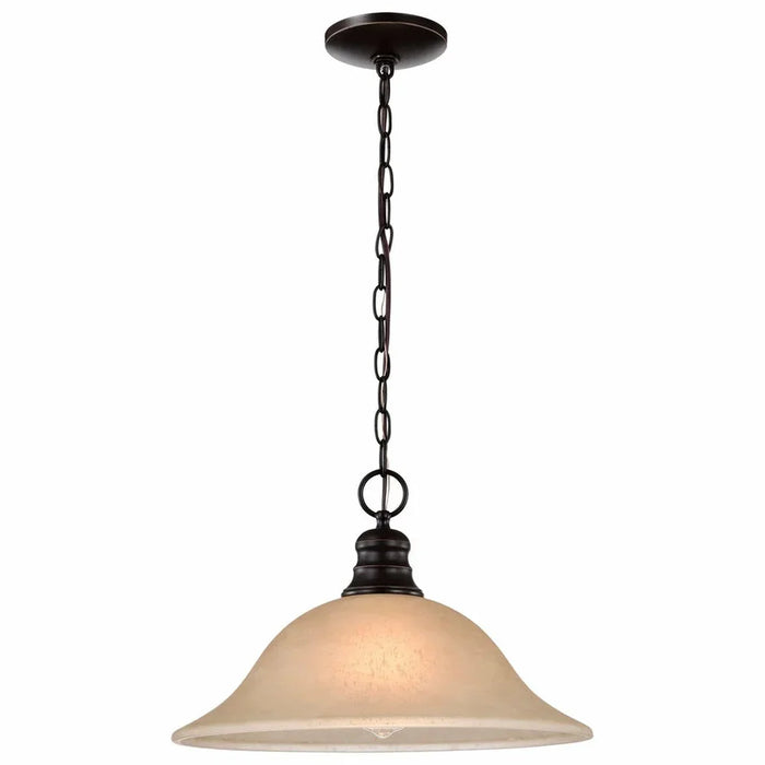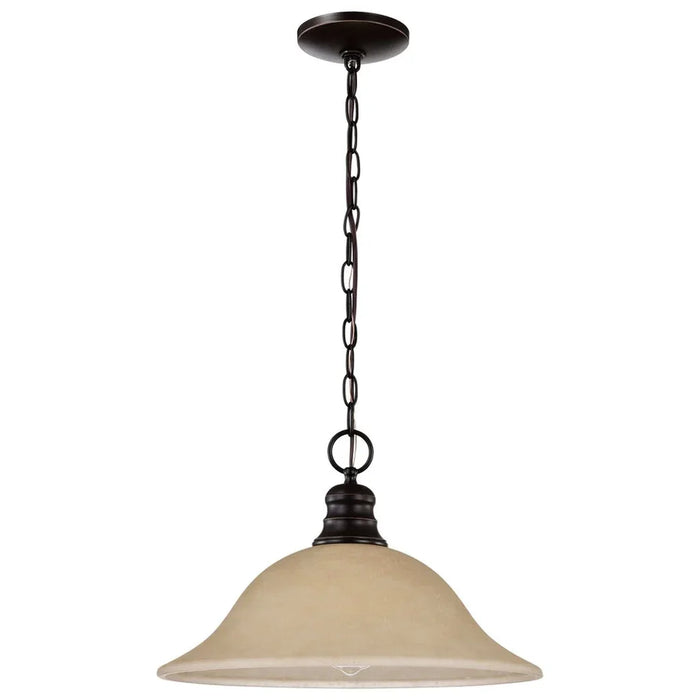 The Empire 1-light, 16-inch hanging dome pendant is a stylish lighting solution for the home. Illuminate living rooms, dining rooms, and foyers with this deep rich mahogany pendant featuring champagne linen washed glass. Elegant and traditional, this single light dome pendant adds sophistication to any home.