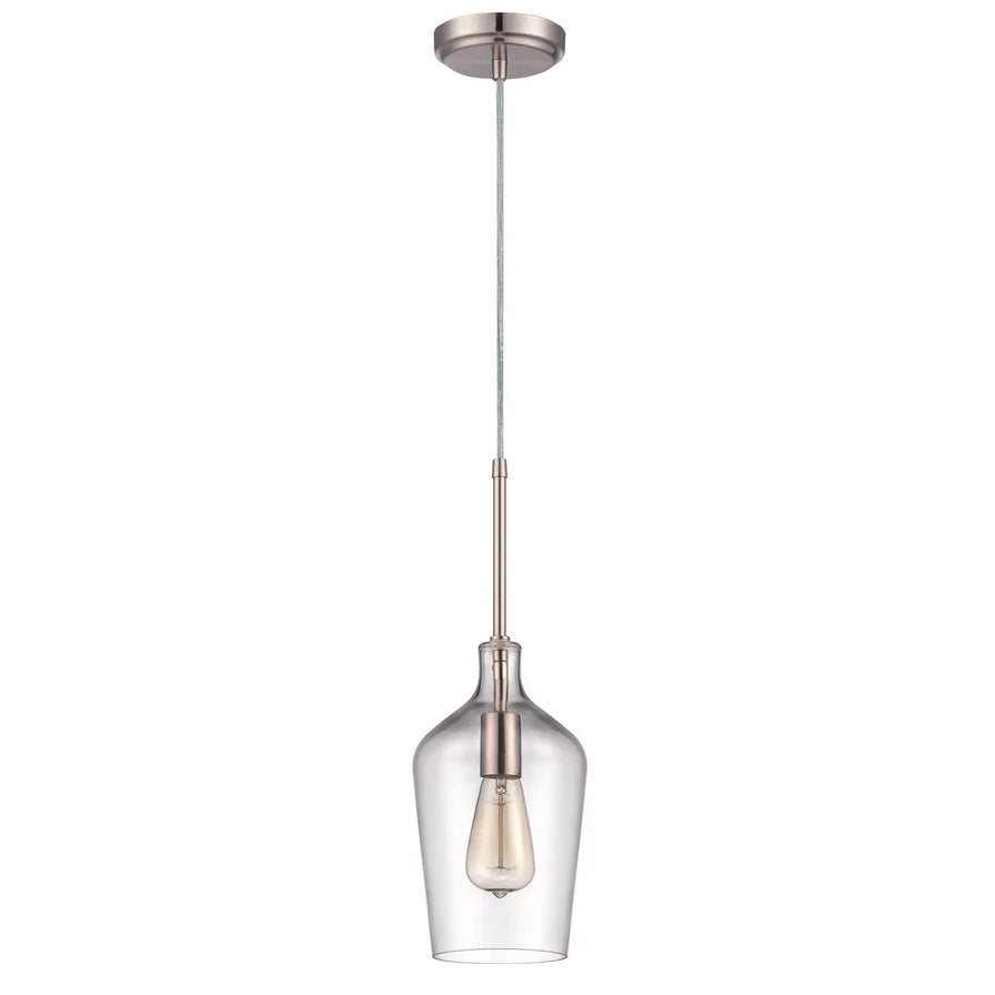 The Craftmade adjustable cord hung 1-light pendant enhances any space with a copper banded, clear water glass shade with the appearance of hand-blown glass.