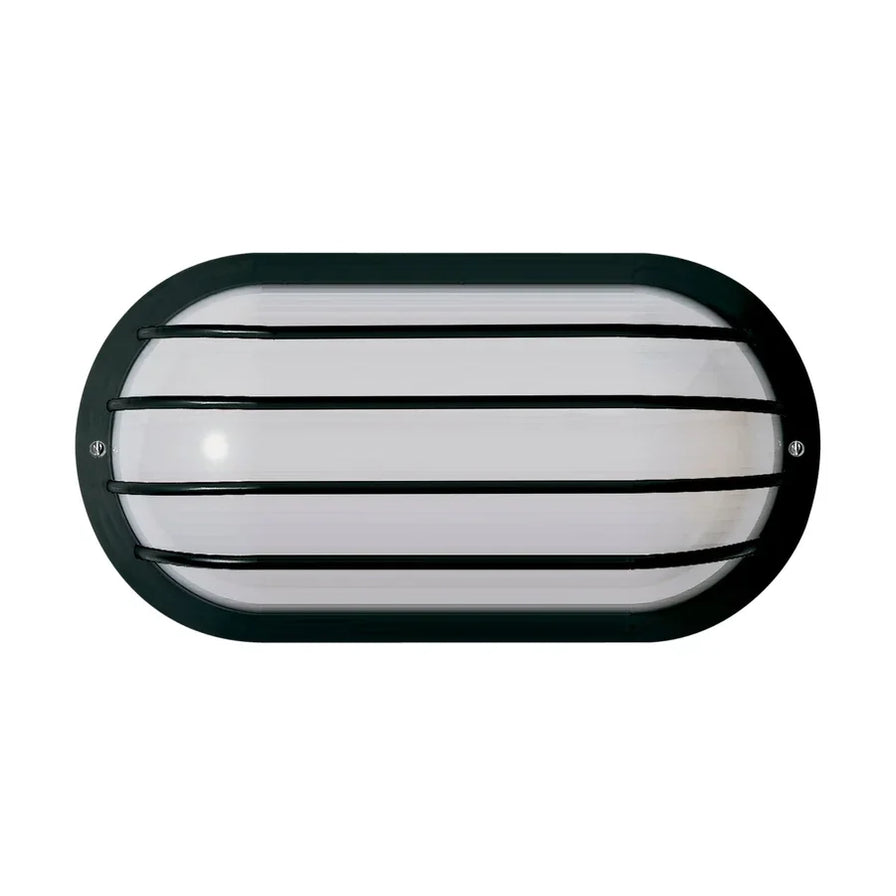 Nuvo's 1 light, 10 inch wall fixture is a practical lighting solution for outside areas and large indoor spaces. A single A19 bulb is protected by the polysynthetic frosted lens of this black wall mount. Functional and durable, make safety and security priorities with this oval cage wall fixture.