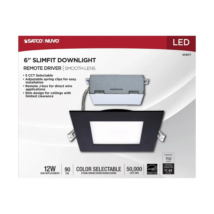 12W LED 6" Downlight Edge-lit CCT Selectable Dimmable Remote Driver 120V - SQUARE/BLACK