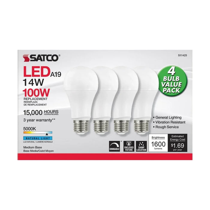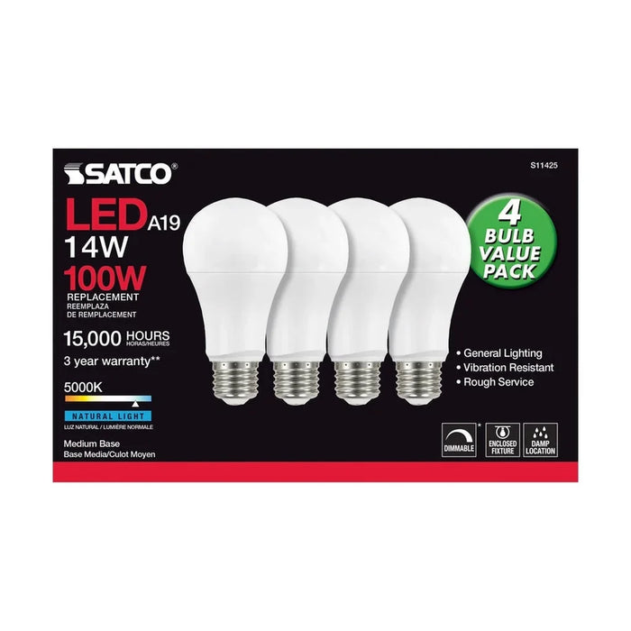 Satco's 14-watt LED lamp is traditional, yet contemporary with its sleek finish and energy saving LED technology. Elegantly illuminate any room in the house with this 4 pack of dimmable white bulbs. Sophisticated and modern, this lamp delivers 15,000 hours of natural white light.