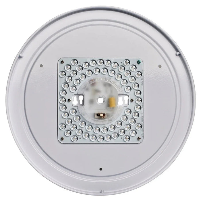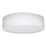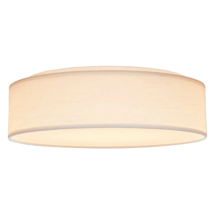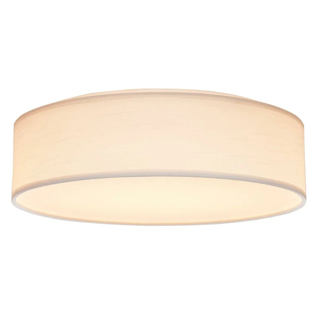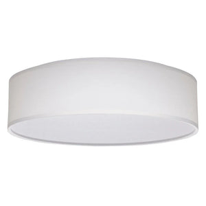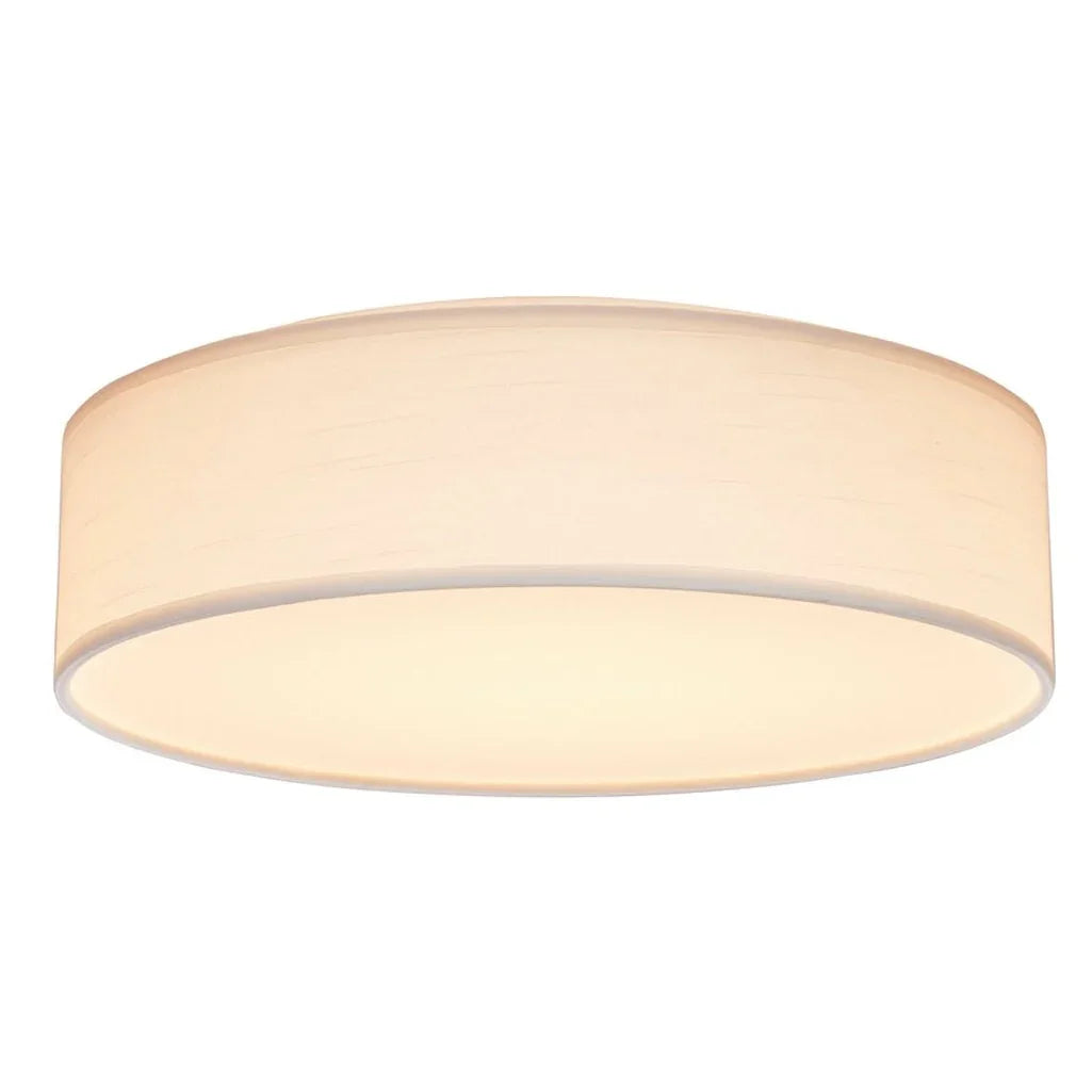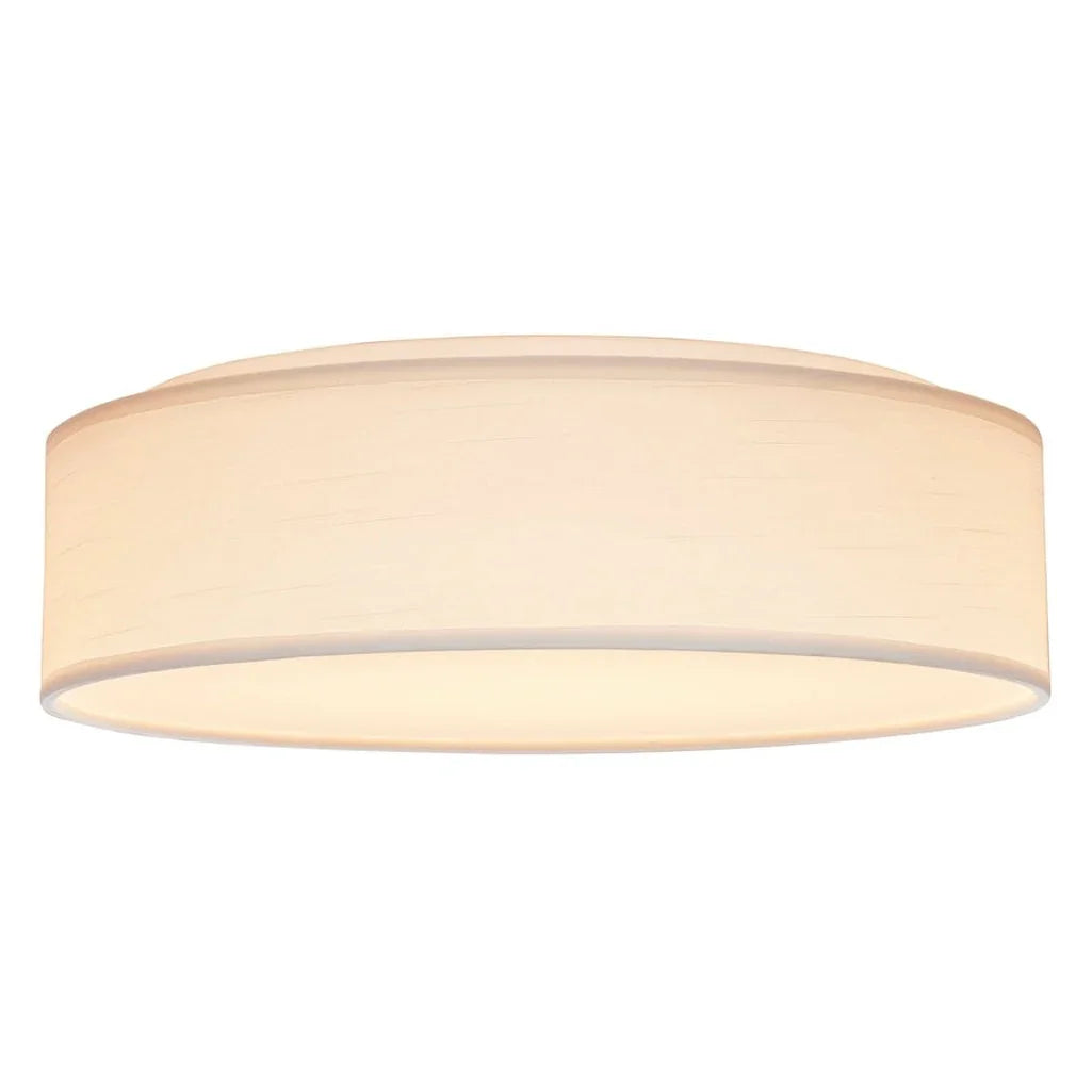 Satco/Nuvo's fabric shade flush fixture delivers on style and function with its energy efficient integrated LED technology. Easily choose between warm to cool lighting with its 3 CCT selectable color options in 3000K/4000K/5000K. Available with a beige fabric shade, or a white fabric shade, the acrylic diffuser blends the light output for glare-free uniform lighting. Damp rated, this fixture is ideal for bathrooms, kitchens, bedrooms, and hallways.