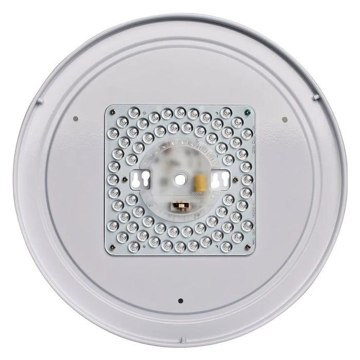 Satco/Nuvo's fabric shade flush fixture delivers on style and function with its energy efficient integrated LED technology. Easily choose between warm to cool lighting with its 3 CCT selectable color options in 3000K/4000K/5000K. Available with a beige fabric shade, or a white fabric shade, the acrylic diffuser blends the light output for glare-free uniform lighting. Damp rated, this fixture is ideal for bathrooms, kitchens, bedrooms, and hallways.