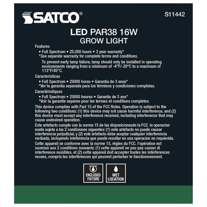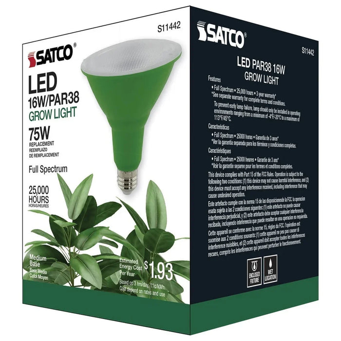 Satco's 16-watt grow lamp is a full spectrum lamp, delivering wavelengths and colors essential for healthy plant growth. Engineered for all phases of indoor plant growth, from budding to flowering, these lamps are perfect for most hydroponic systems. Generating less heat than older technologies, this grow lamp delivers 25,000 hours of illumination.