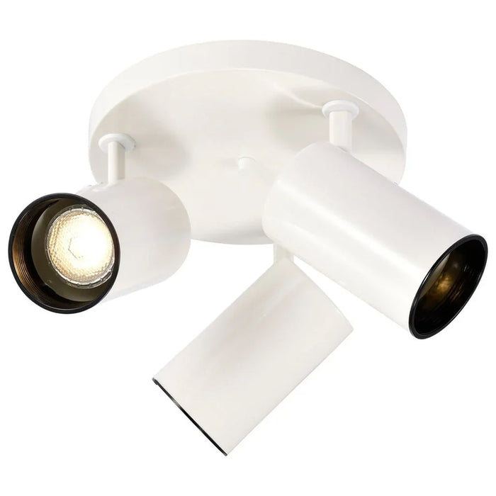 SATCO|NUVO's three-light flush mount features pivoting heads for directly focused illumination. A white finish and black-rimmed interior round out the design for simple, no-fuss lighting. The fixture is ideal for entryways, hallways, mudrooms, bathrooms and walk-in closets, where additional lighting is needed.