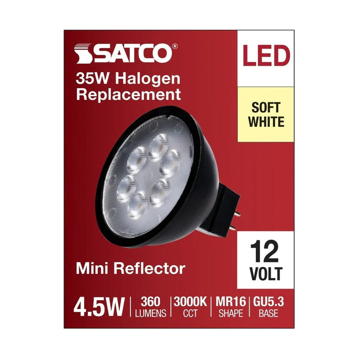 4.5W MR16 LED - Black Finish - 3000K - GU5.3 Base - 360 Lumens - 12V