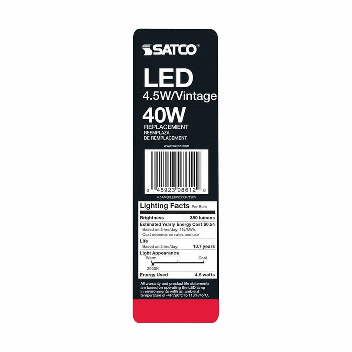 4.5 Watt ST19 LED - Amber - Medium base - 2000K - 350 Lumens - 120 Volt - Carded