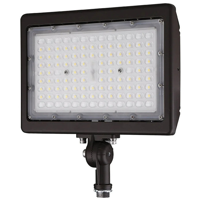 SATCO|NUVO's 90-watt LED flood light provides illumination and security to the outdoor architectural landscape. This dimmable, aluminum alloy flood light comes in a bronze finish, and offers a wide range of mounting options. Durable and versatile, this fixture delivers 50,000 hours of cool white light.