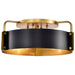 The Altos Collection adds a touch of drama and intrigue to any space. The natural brass accents provide a warmth to the industrial-inspired construction, which is finished in a velvety, matte black. The meticulous attention to detail in the laser-cut shade and matching rivets provide Altos with its signature style and refined design. Effortlessly blending traditional with modern aesthetics, elevate your surroundings with a functional flush mount or stunning pendant.