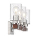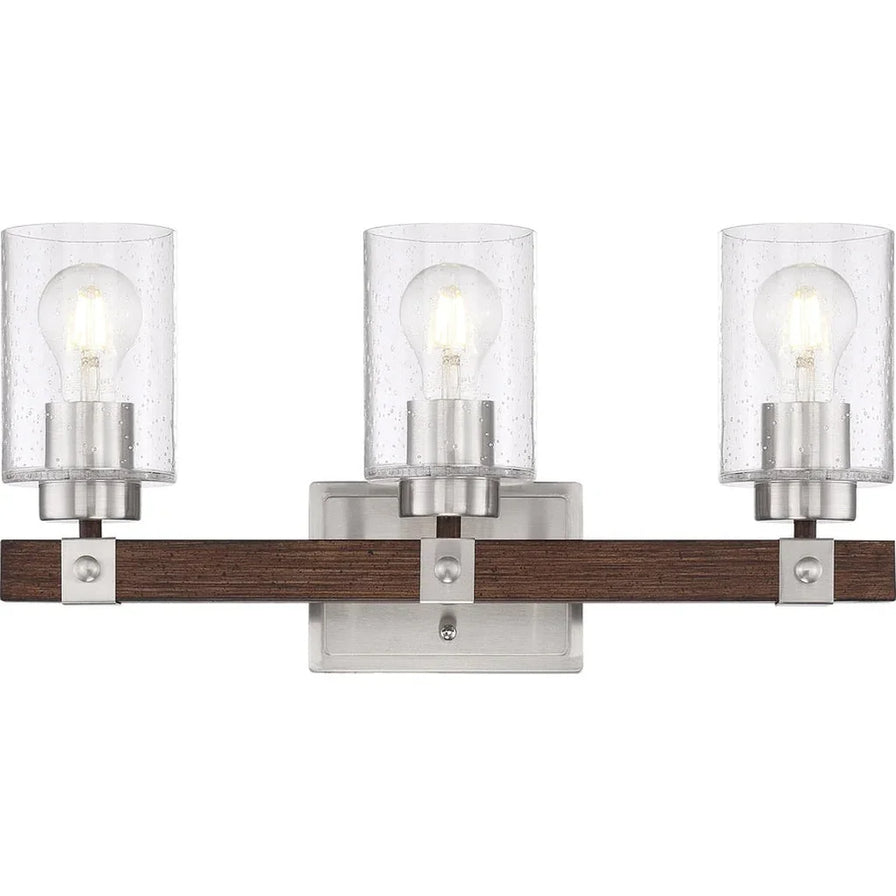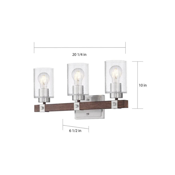 The Arabel 3 light vanity fixture is an elegant lighting solution for the home. This triple light wall vanity features a brushed nickel and nutmeg wood finish with clear seeded glass, adding distinction to bathrooms, hallways, and any space that would benefit from extra illumination. Stylish and contemporary, this vanity adds sophistication to the home.