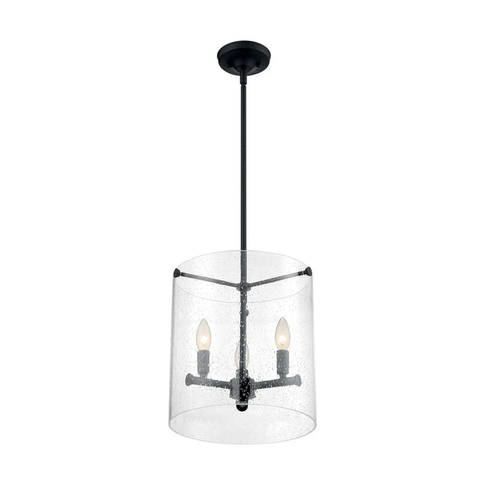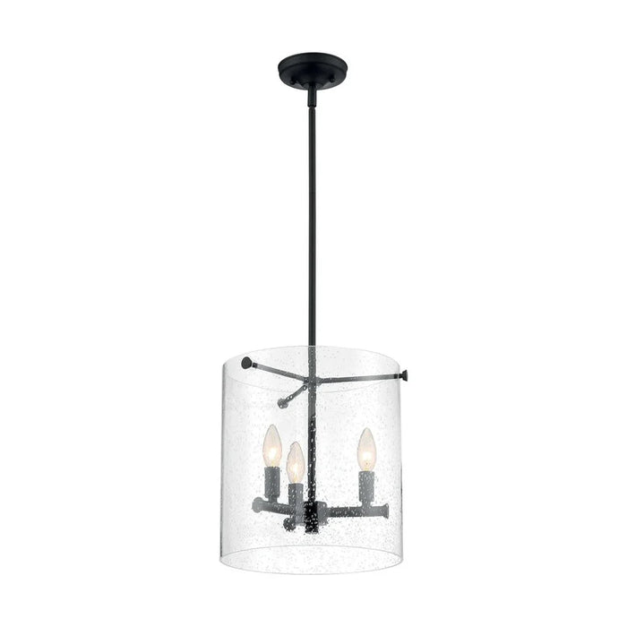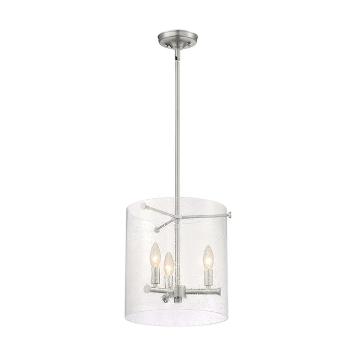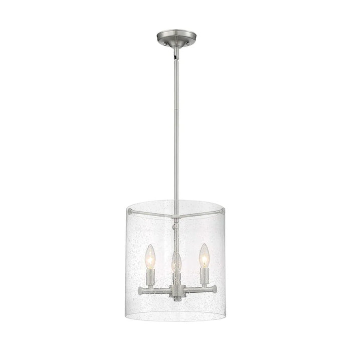 The seeded glass cylinder shade accents the Brushed Nickel finish on the Bransel three-light pendant light. The sleek, streamlined appearance of the Bransel compliments both the popular modern farmhouse style or can be at home in a coastal setting. 11.75 inches wide by 12.875 inches high, the Bransel can be a single light source or used in a multiple linear light application.