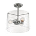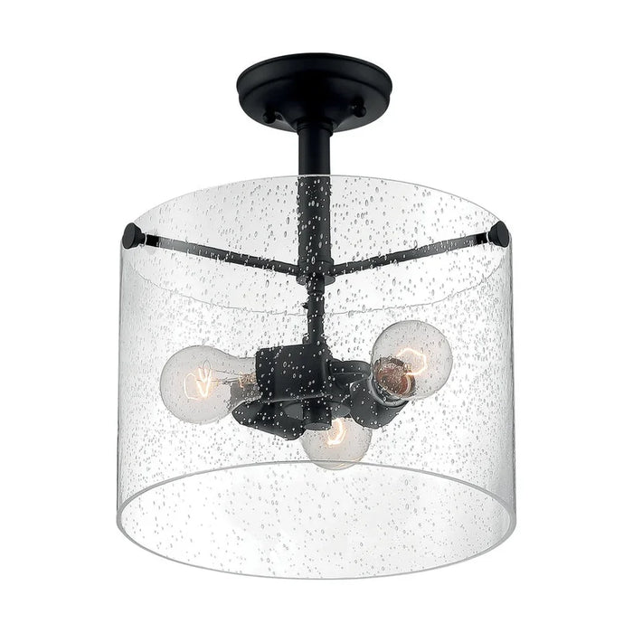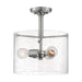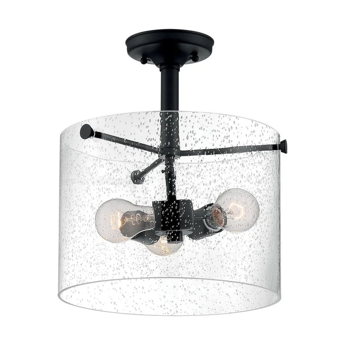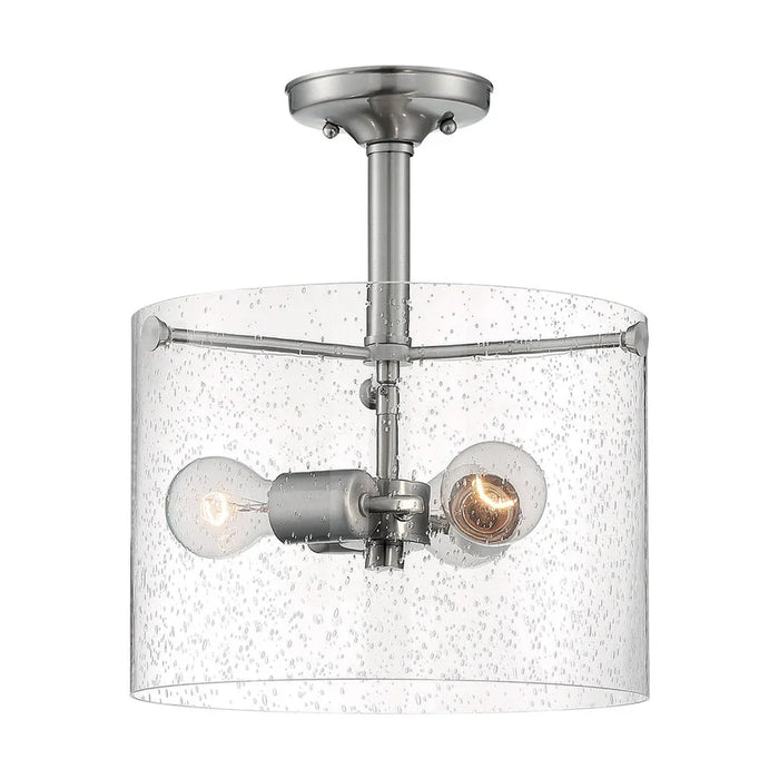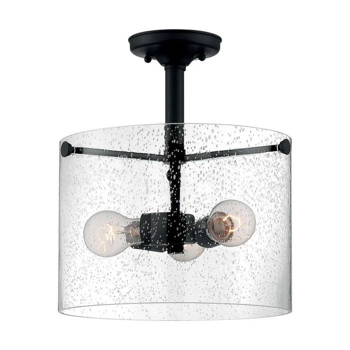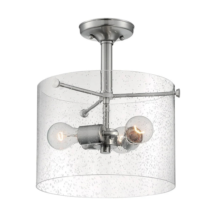 The seeded glass cylinder shade accents the Brushed Nickel finish on the Bransel three-light semi-flush light. The sleek, streamlined appearance of the Bransel compliments both the popular modern farmhouse style or can be at home in a coastal setting. 11.75 inches wide by 12.875 inches high, the Bransel has many applications in the house.